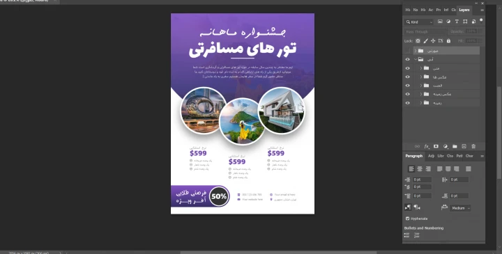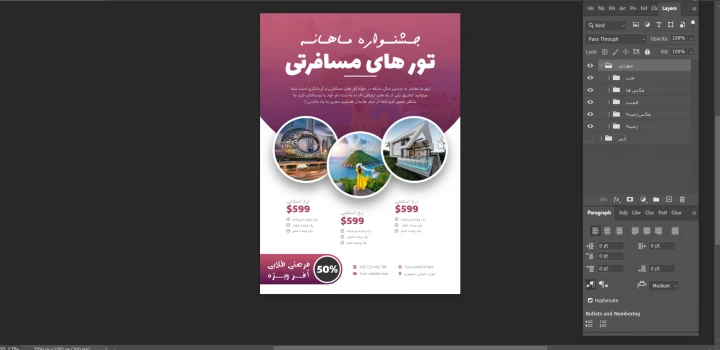پوستر پریمیوم لایه باز تخفیف تورهای گردشگری و مسافرتی دو عددی psd