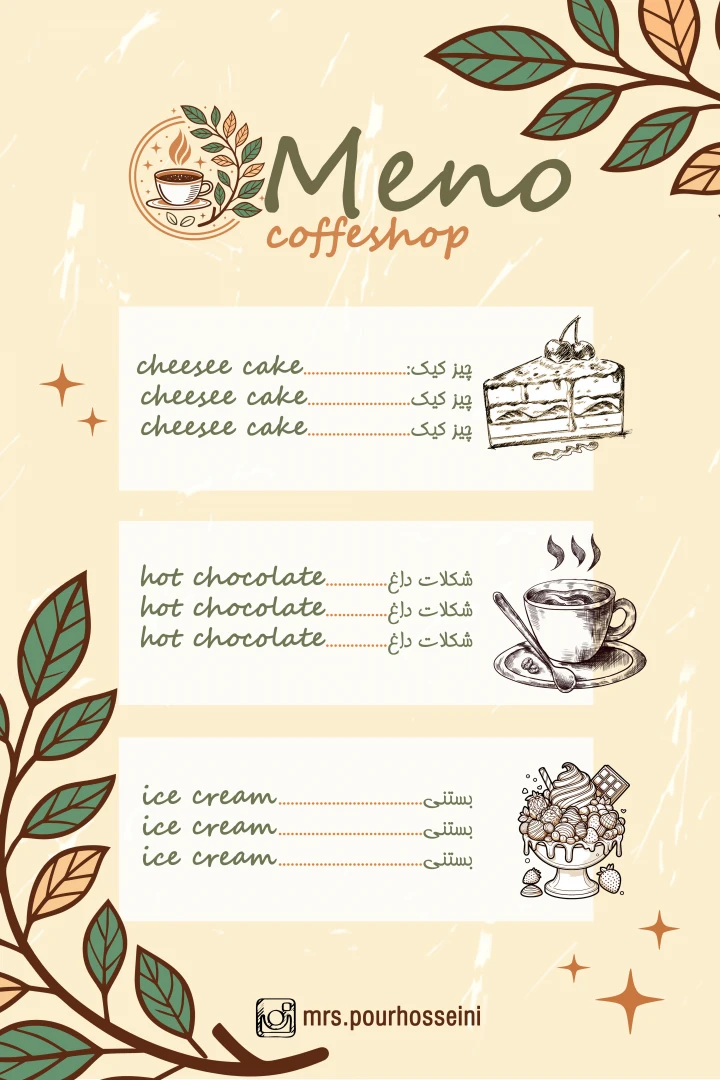 نمونه منوی کافی شاپ شامل چه آیتمهایی میشود؟