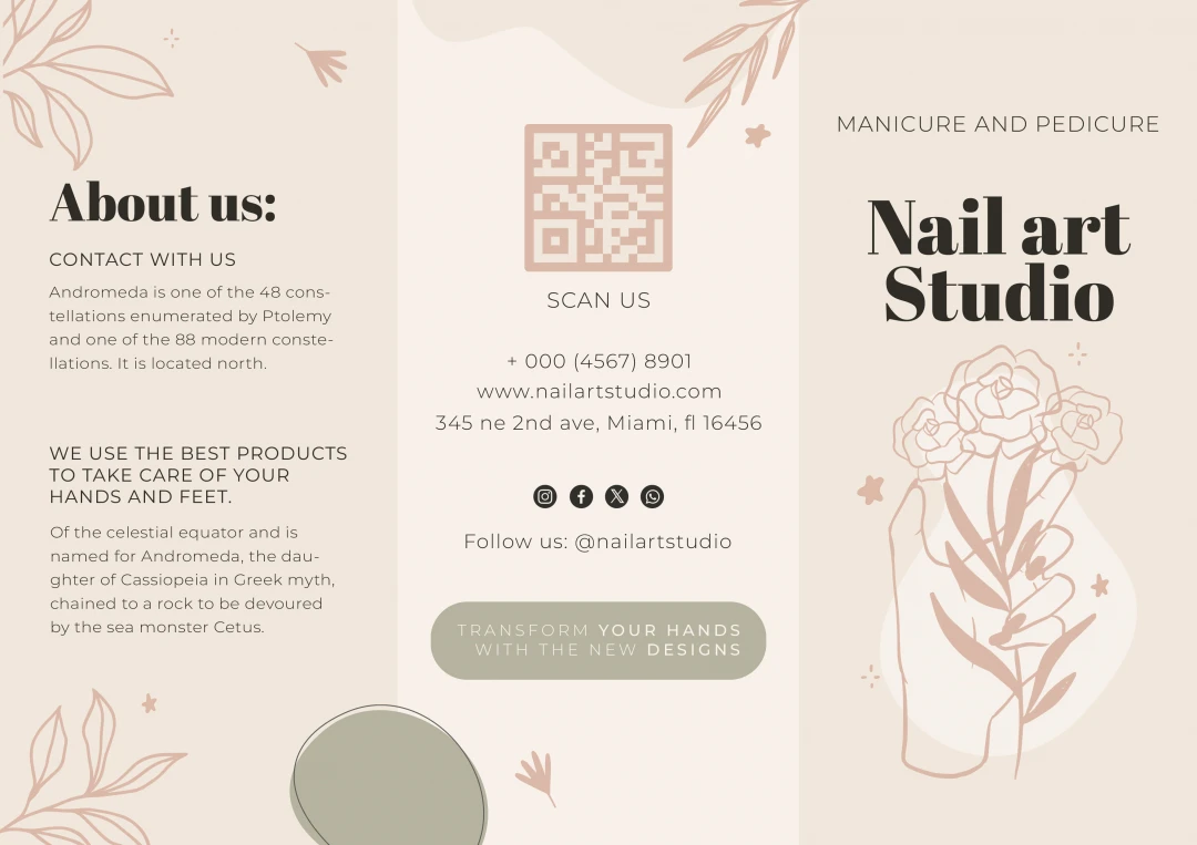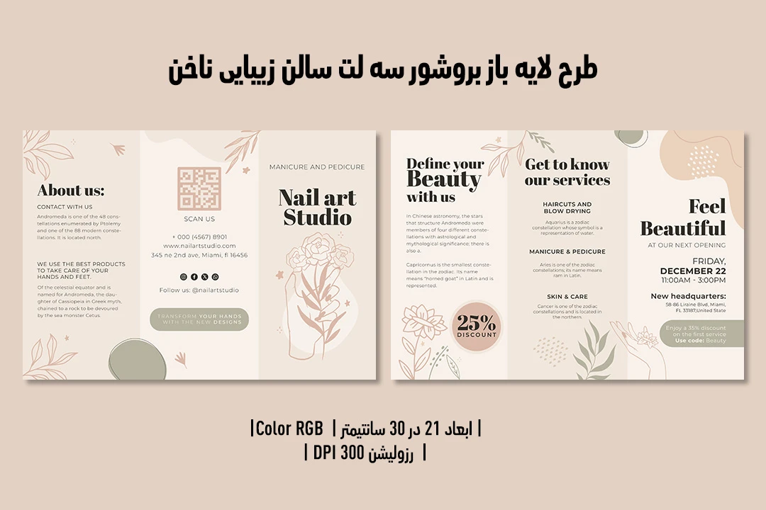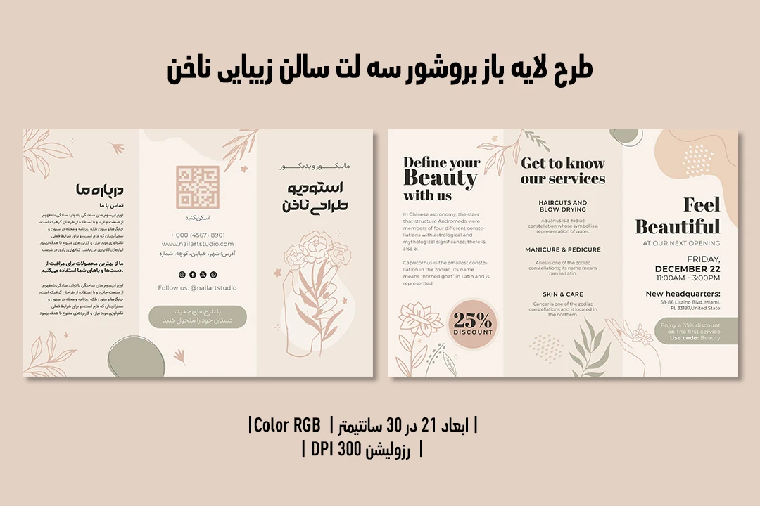 💅✨ بروشور سهلَت سالن زیبایی ناخن | طراحی شیک، زنانه و حرفهای + فایل PSD و JPG