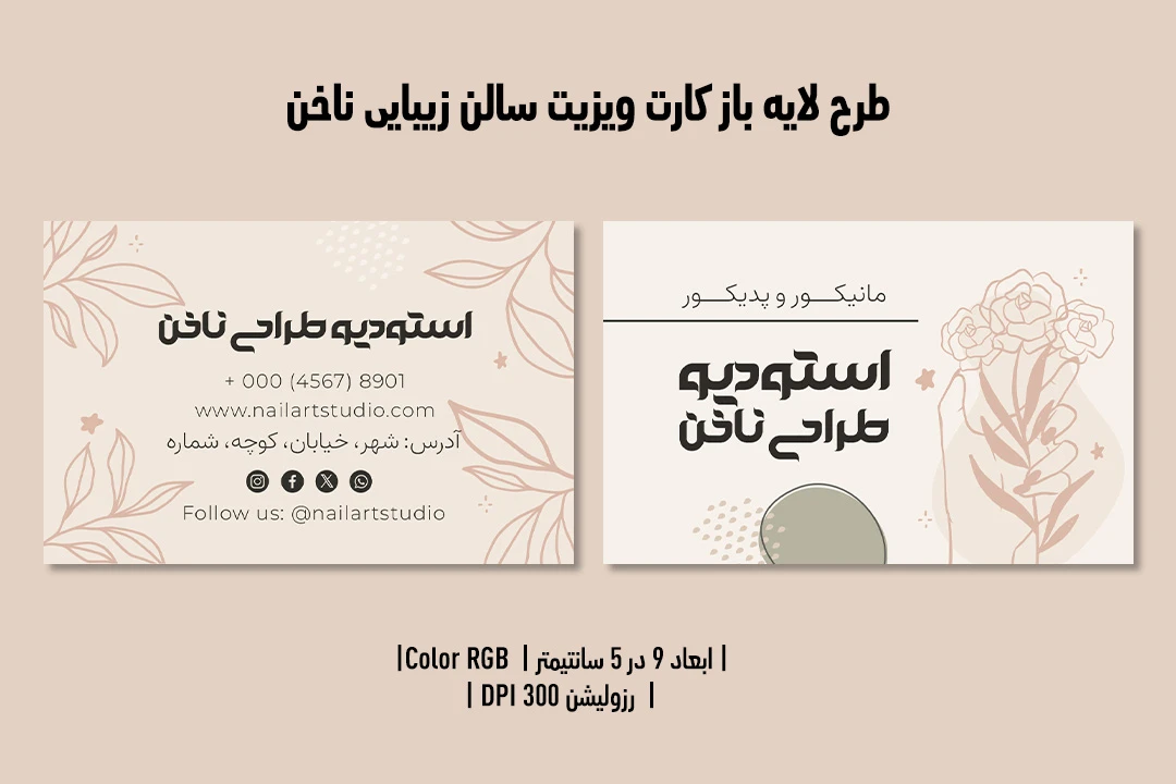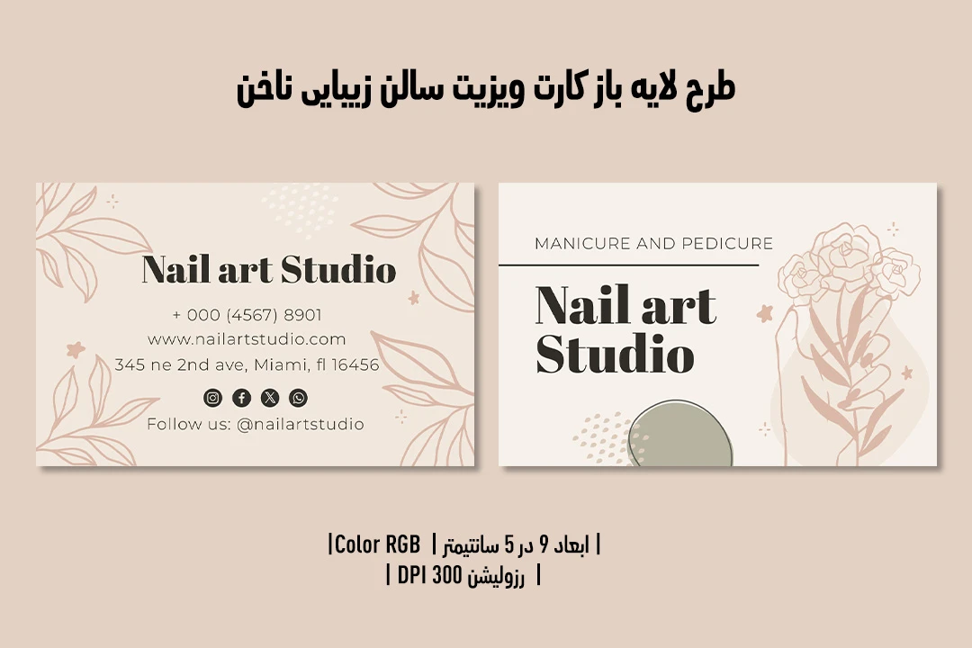 💅✨ کارت ویزیت حرفهای سالن زیبایی ناخن | طراحی لوکس، مدرن و کاملاً لایهباز