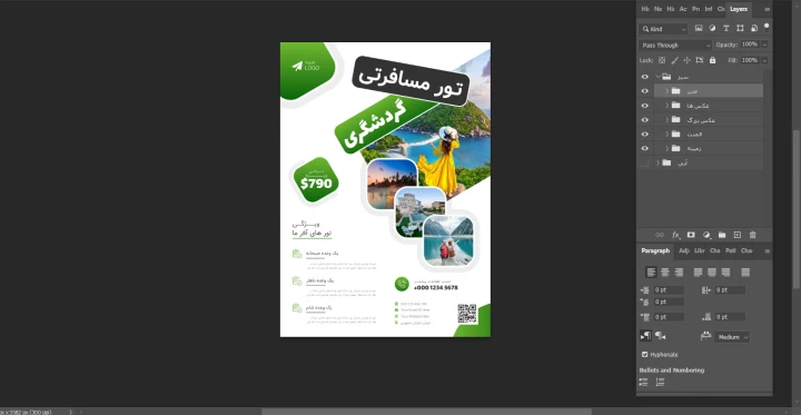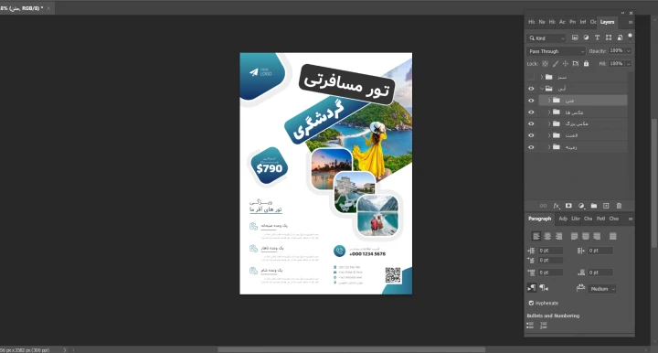 پوستر پریمیوم لایه باز تورهای گردشگری و مسافرتی در دو رنگ psd