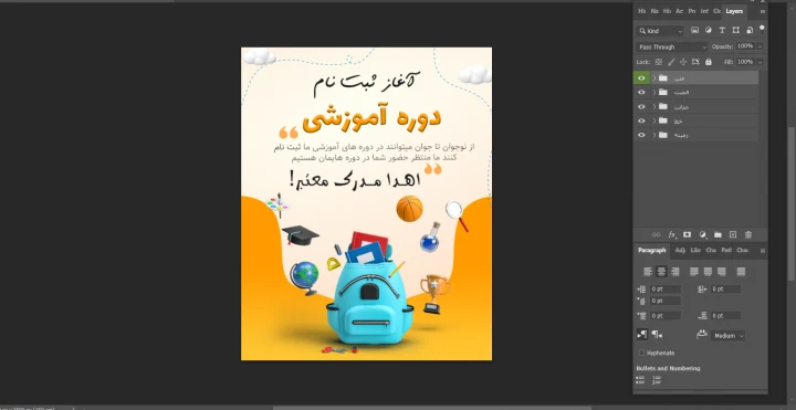 پوستر پریمیوم لایه باز ثبت نام دوره آموزشی psd