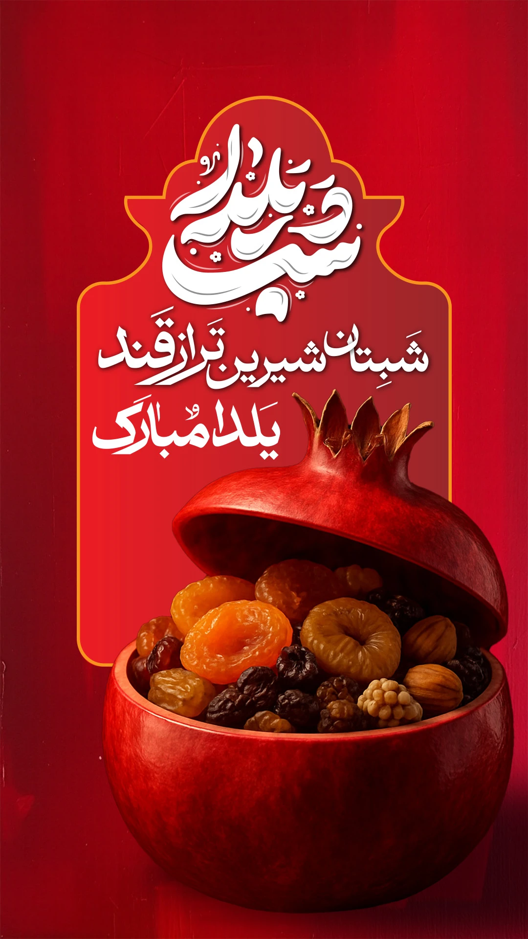 استوری شب یلدا نیز با ابعاد 1920 در 1080 پیکسل آماده شده و مناسب انتشار در استوری، کمپینهای تخفیف و اطلاعرسانی مناسبتی است.