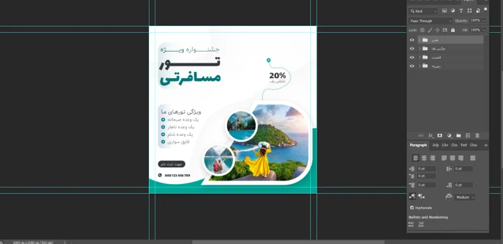 قالب لایه باز پریمیوم پست اینستاگرام تخفیف تورهای گردشگری و مسافرتی psd