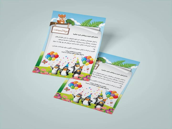 این لوح تقدیر برای تقدیر از تلاش، پیشرفت تحصیلی، اخلاق خوب، نظم، مشارکت، خلاقیت و فعالیتهای آموزشی دانشآموزان کاملاً مناسب بوده و با کیفیت بسیار بالا طراحی شده است. رنگها و عناصر گرافیکی بهگونهای انتخاب شدهاند که فضایی شاد و انگیزشی ایجاد کنند و با چاپ در اندازههای مختلف نیز کیفیت خود را حفظ میکنند.