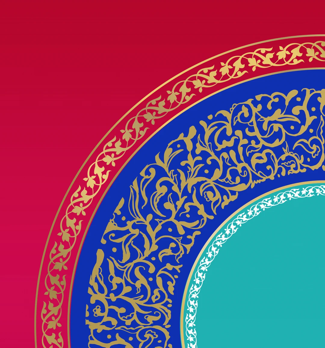 طرح ترنج با قاب اسلیمی طرح لایه باز فتوشاپ قابل ویرایش با پس زمینه قرمز، سرمه ای و رنگ طلایی