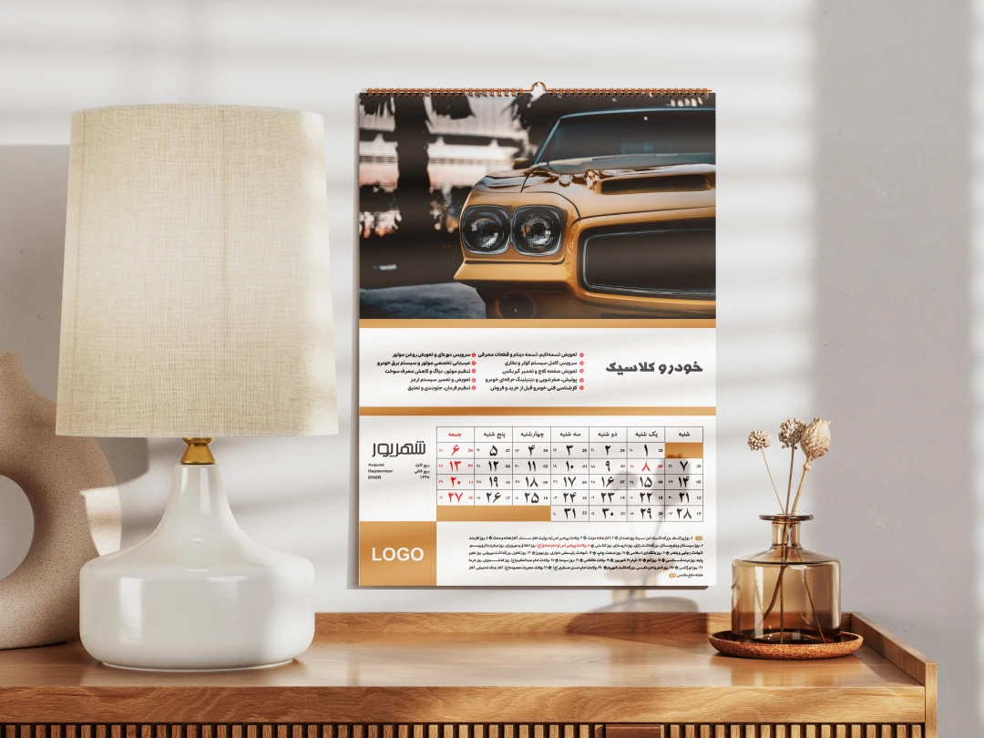 این تقویم دیواری در سایز A3 و با طراحی اختصاصی بر پایه تصاویر جذاب خودروهای کلاسیک تهیه شده و بهطور ویژه برای مشاغلی مانند نمایشگاه خودرو، تعمیرگاهها، صافکاری و نقاشی، دیتیلینگ، لوازم یدکی، تیونینگ و سایر کسبوکارهای خودرویی مناسب است.