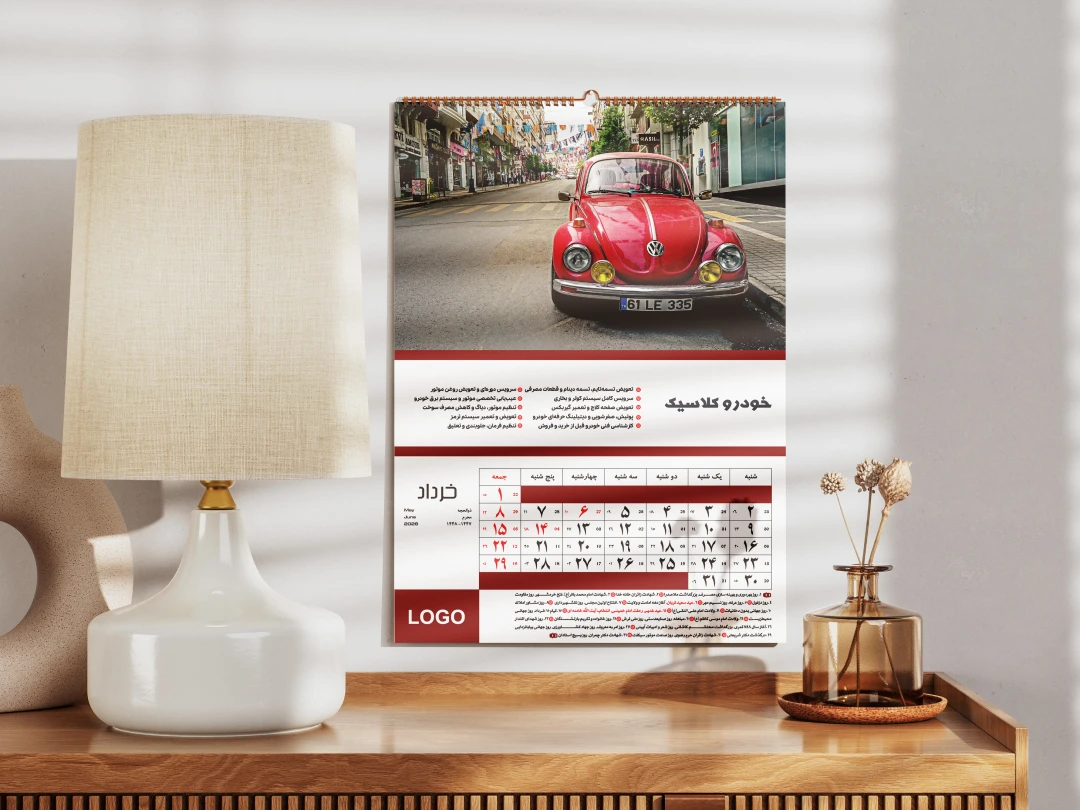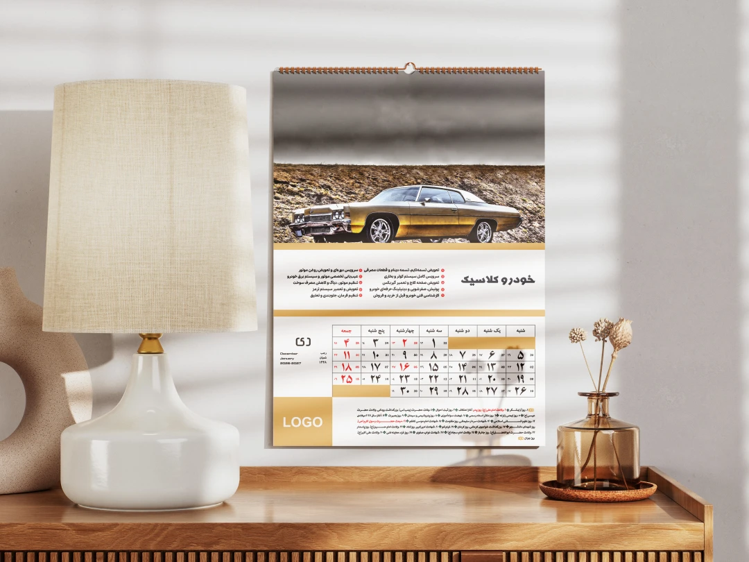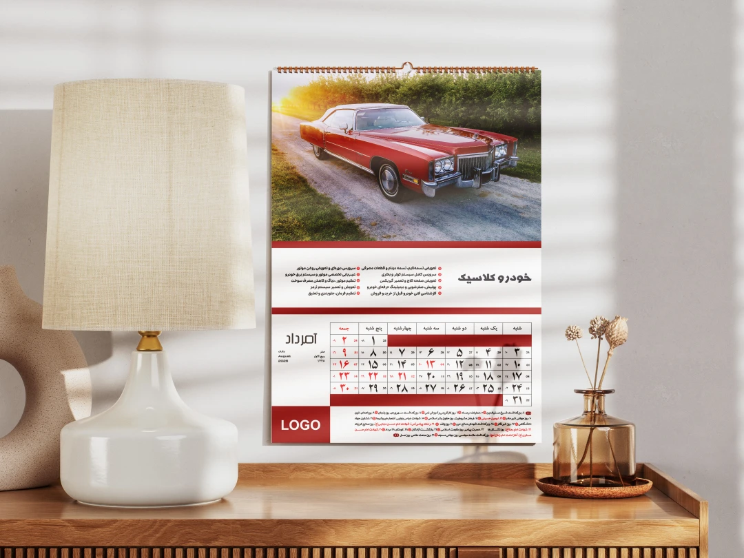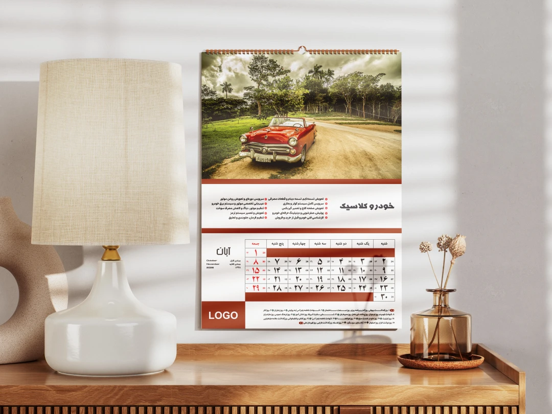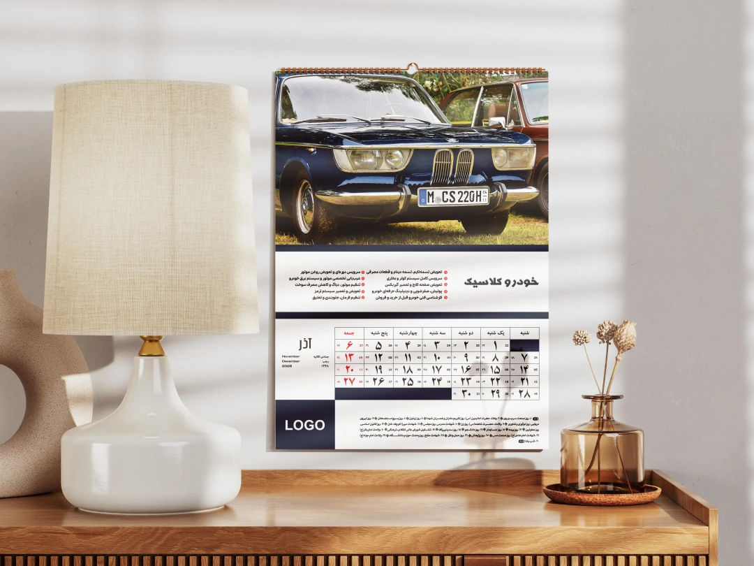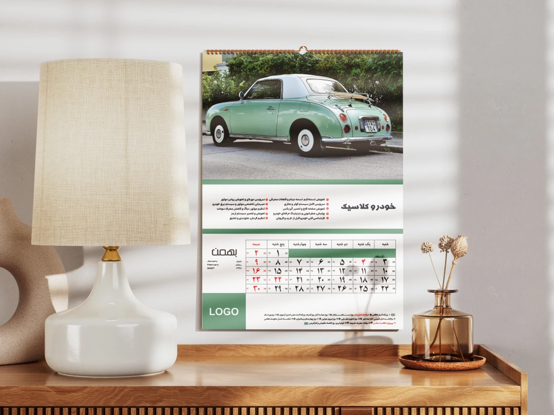 فایل آماده تقویم دیواری A3 با تصاویر خودروهای کلاسیک | مناسب مشاغل خودرویی
