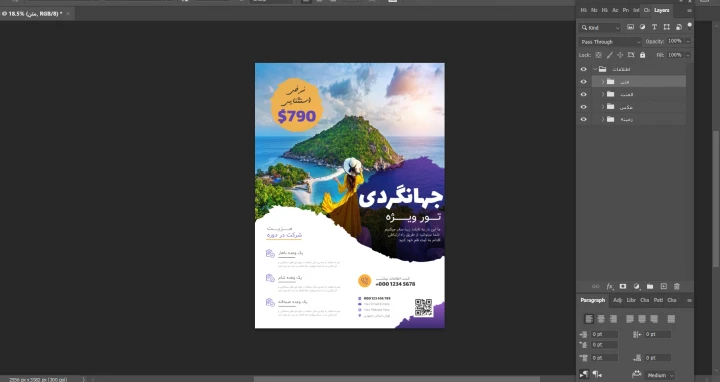 پوستر پریمیوم لایه باز تورهای گردشگری و مسافرتی psd