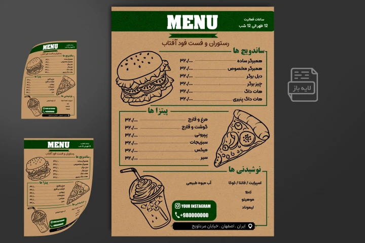 طرح خاص و با کیفیت بالا می باشد می توانید قیمت و اطلاعات منو را ادیت کنید و استفاده کنید