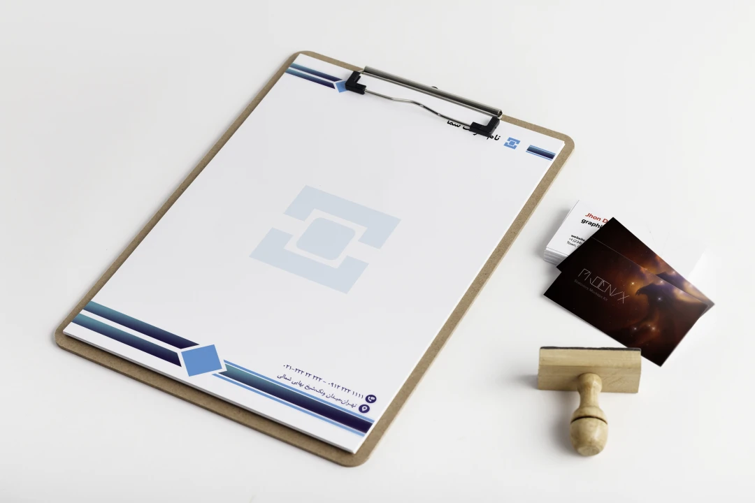 سربرگ اداری شیک و مدرن مناسب شرکتها، دفاتر مهندسی، برندهای خدماتی و کسبوکارهای رسمی. طراحی حرفهای با قابلیت ویرایش کامل و مناسب چاپ.