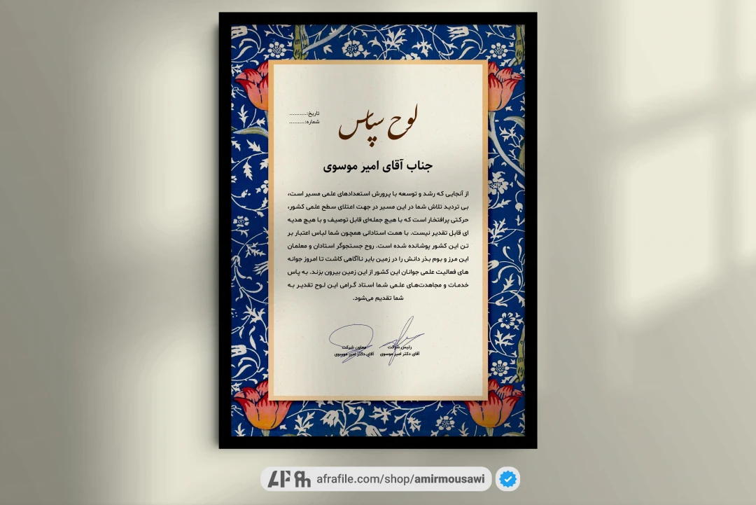 طرح لایه باز لوح سپاس طرح گلزار - کد 17
