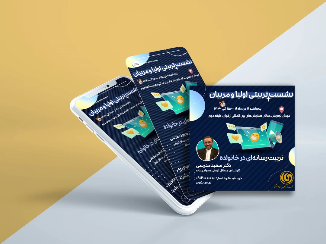 فایل اصلی و کاملاً لایهباز (Editable) دو طرح پوستر با موضوع "تربیت رسانهای در خانواده" در اندازه پست و استوری اینستاگرام
