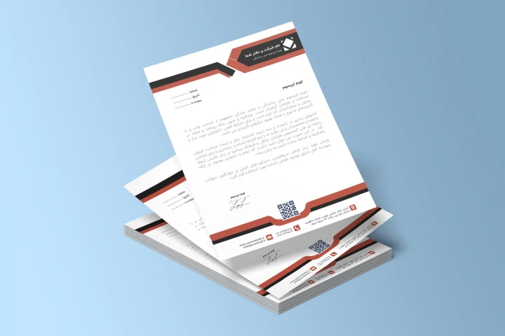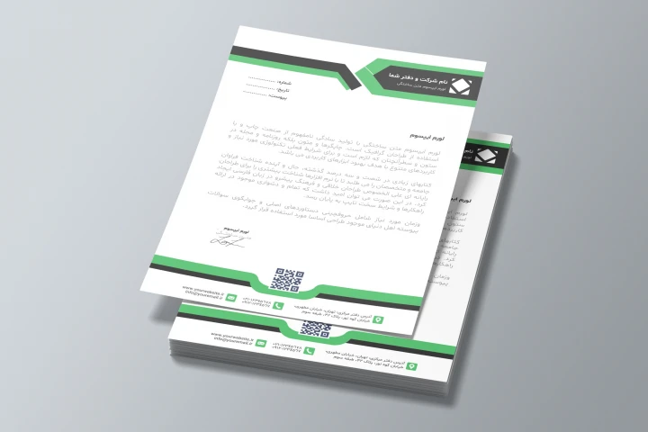این مجموعه شامل دو سربرگ رسمی با طراحی مینیمال و ساختار سازمانی دقیق است که در رنگبندی قرمز مشکی و سبز مشکی ارائه شدهاند. طراحی این سربرگها بر پایه نظم، سادگی و خوانایی شکل گرفته و با استفاده از خطوط هندسی، فضای سفید متوازن و چینش منطقی عناصر، جلوهای حرفهای و قابل اعتماد به ارتباطات اداری شما میبخشد.
