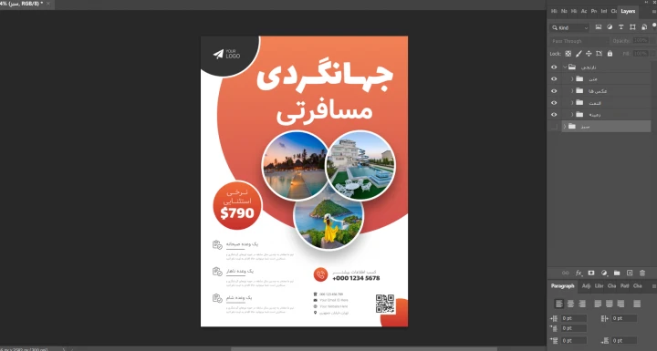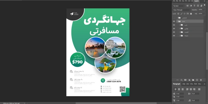پوستر پریمیوم لایه باز تخفیف تورهای گردشگری و مسافرتی در دو رنگ psd