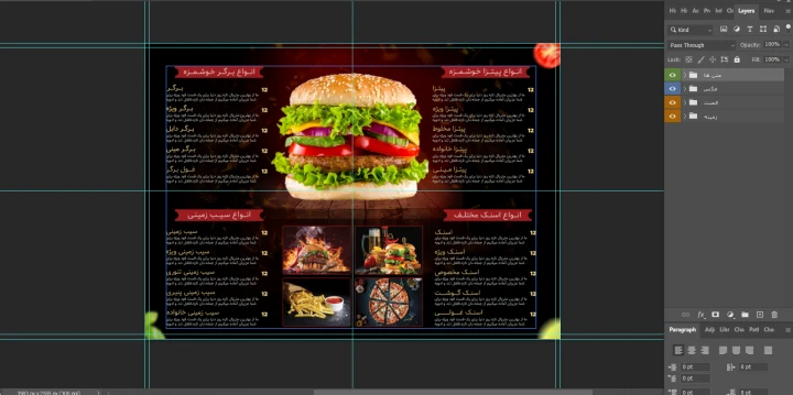 منوی پریمیوم لایه باز فست فود و رستوران psd