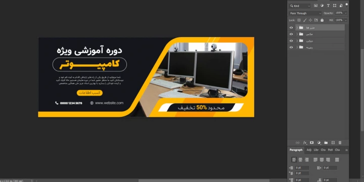 بنر پریمیوم سایت لایه باز تخفیف دوره آموزشی کامپیوتر psd