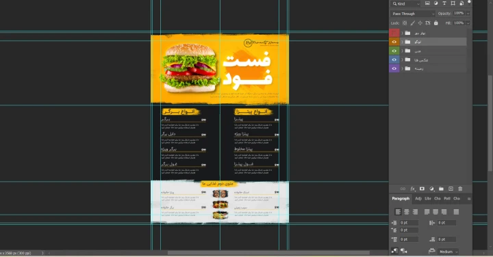 منوی پریمیوم لایه باز فست فود و رستوران psd