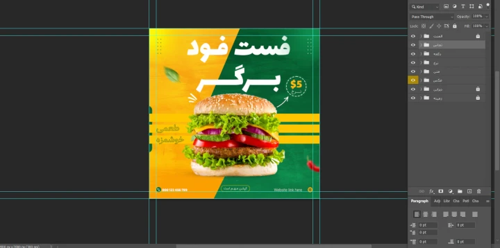 قالب لایه باز پریمیوم پست اینستاگرام فست فود و رستوران psd
