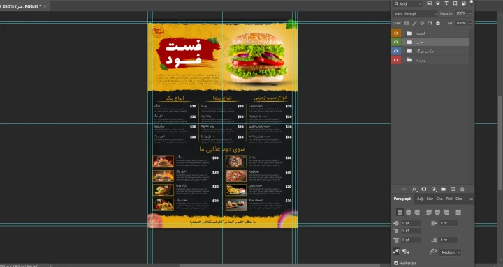 منوی پریمیوم لایه باز فست فود و رستوران psd