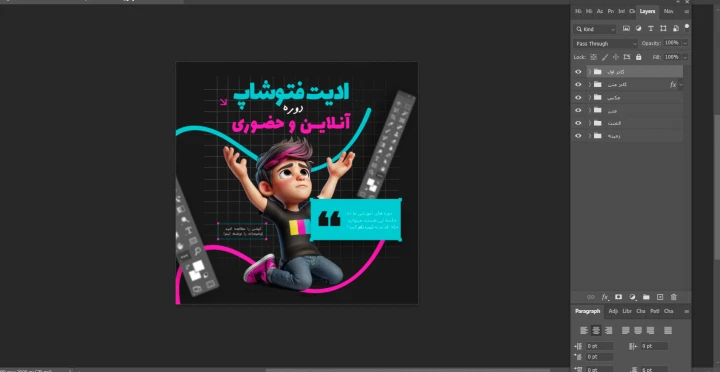 قالب لایه باز پریمیوم پست اینستاگرام دوره ادیت فتوشاپ psd