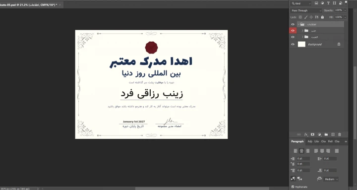 قالب لایه باز پریمیوم گواهی مدرک برای اهدا مدارک دوره ها psd