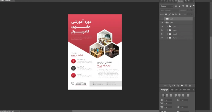 پوستر پریمیوم لایه باز ثبت نام دوره آموزشی دو رنگ مختلف psd