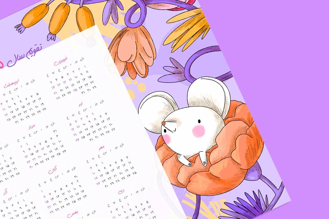 تقویم دیواری لایه باز سال 1405 فانتزی با طرح موش و خرگوش