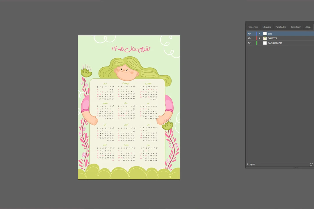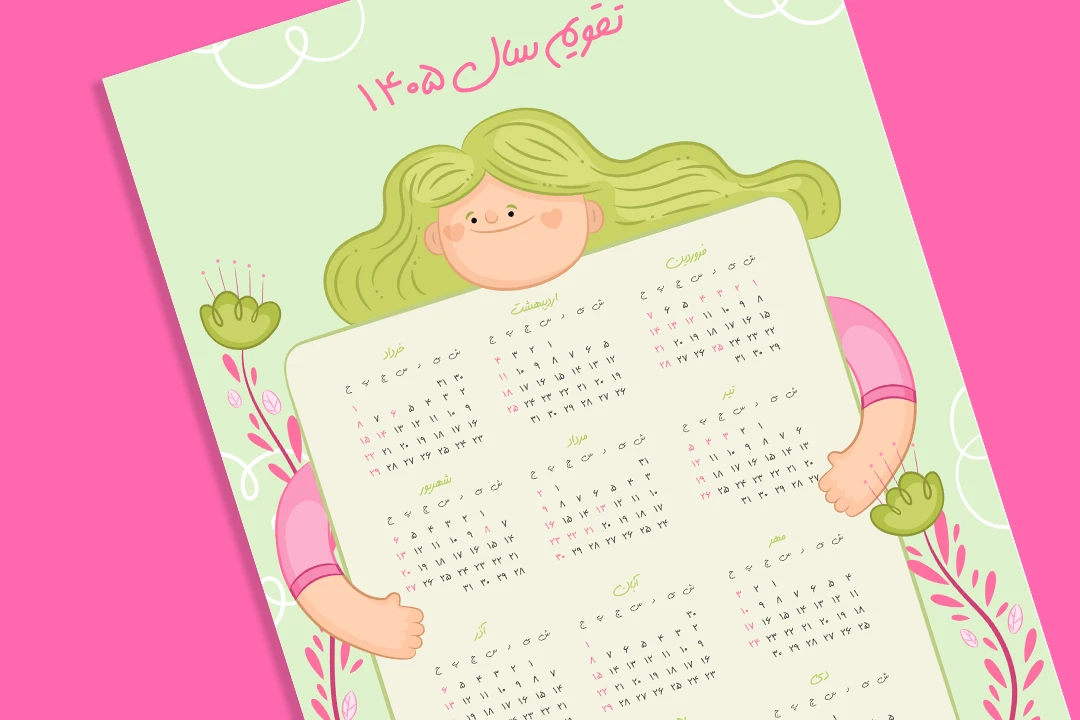این تقویم شمسی به صورت لایه باز طراحی شده و در فرمتهای AI، JPG و PDF ارائه میشود تا به راحتی بتوانید آن را ویرایش یا چاپ کنید.