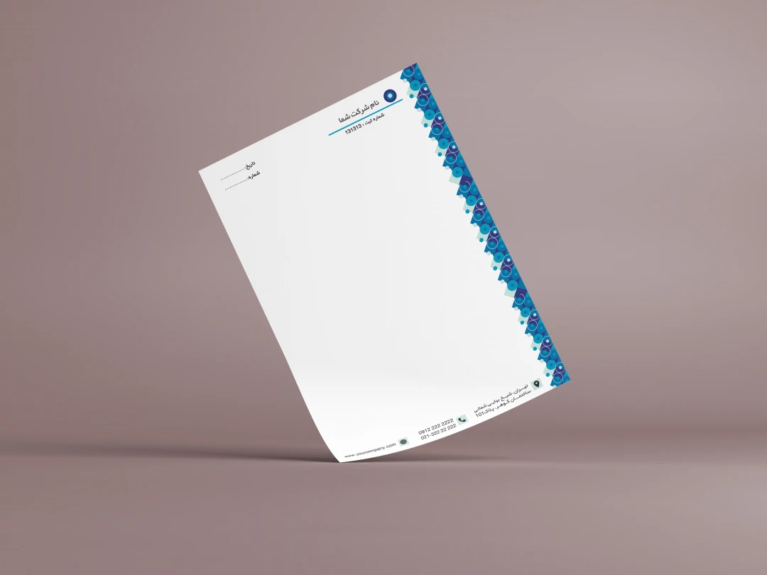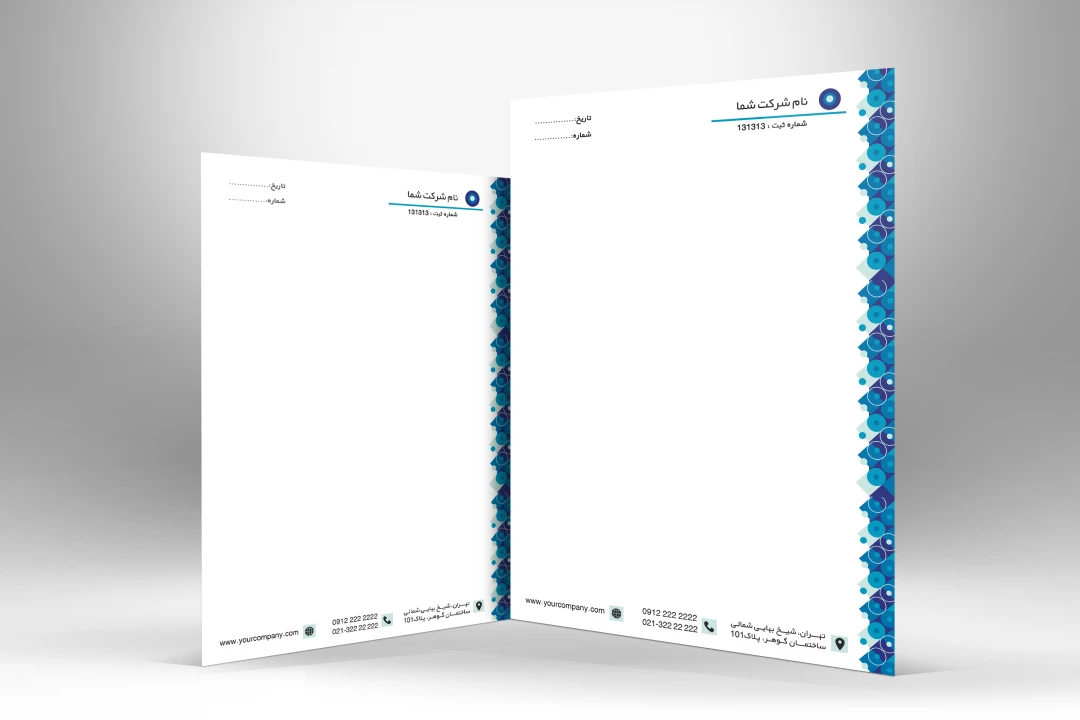 طراحی حرفه ای ست اداری شامل سربرگ در 2 سایز (A4 و A5 ) و کارت ویزیت ، مناسب برای شرکت ها و سازمان ها .