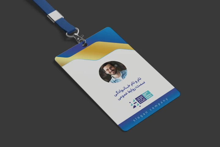 فایل قابل ویرایش در فتوشاپطرح لایه باز آی دی کارت نمایشگاهبه همراه فایل موکاپ ارائه