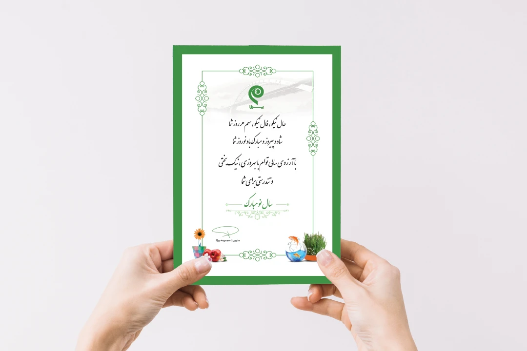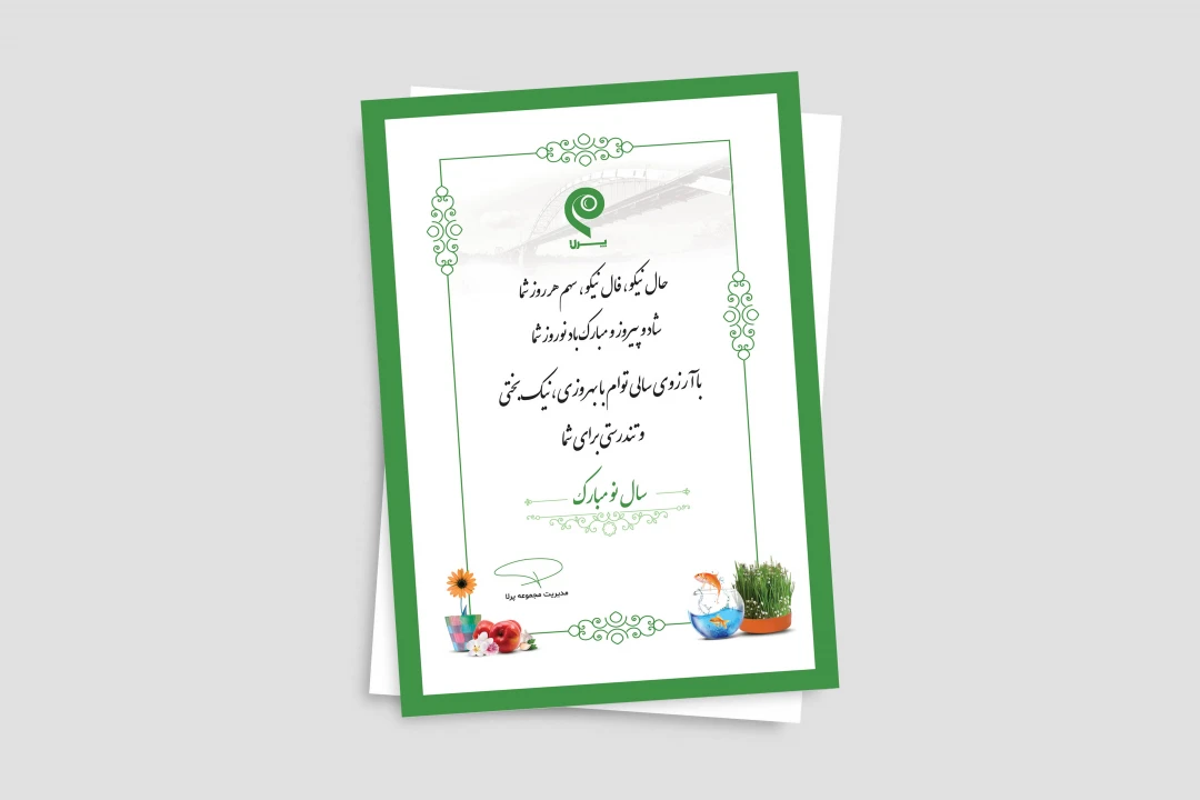 نکته : چیدمان و طرح لایه باز کارت تبریک عید باستانی نوروز مناسب تمام مشاغل به گونهای قرار گرفته است که قابل استفاده برای سایزها، شرکت ها و مشاغل مختلف میباشد.