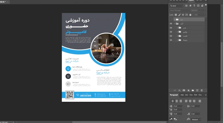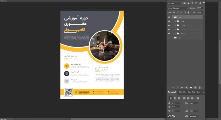 پوستر پریمیوم لایه باز ثبت نام دوره آموزشی دو رنگ مختلف psd