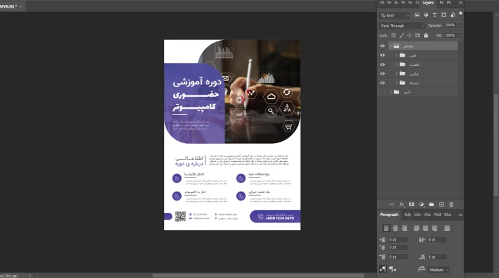 پوستر پریمیوم لایه باز ثبت نام دوره آموزشی دو رنگ مختلف psd