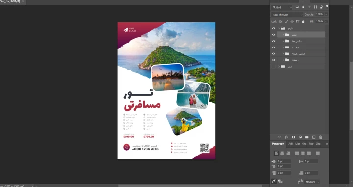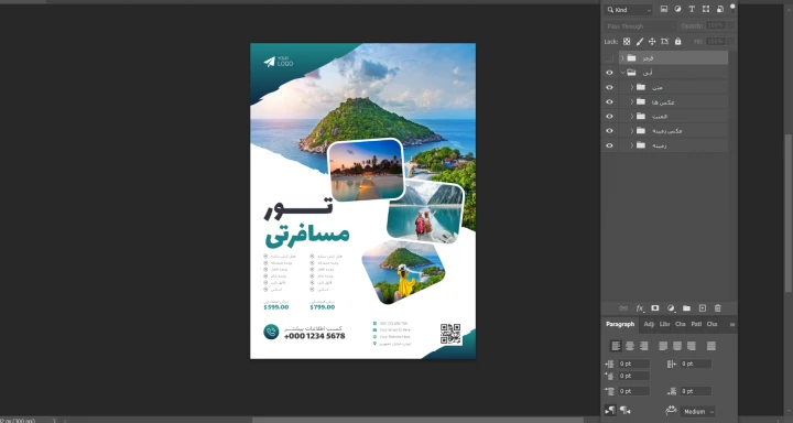 پوستر پریمیوم لایه باز تورهای گردشگری و مسافرتی در دو رنگ psd