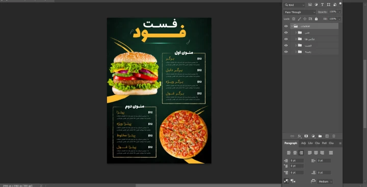 منوی پریمیوم لایه باز فست فود و رستوران psd