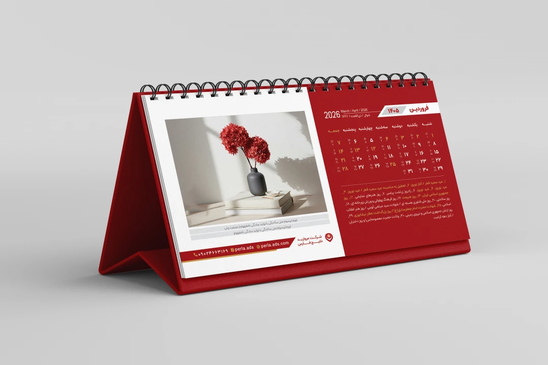نکته : چیدمان و طرح لایه باز تقویم رومیزی 1405 به گونهای قرار گرفته است که قابل استفاده برای سایزها، شرکت ها و مشاغل مختلف میباشد.