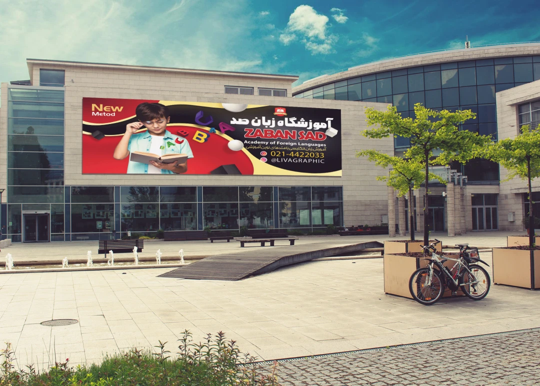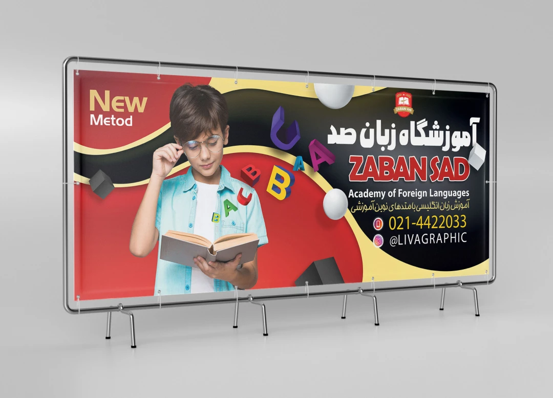 تابلو سر در آموزشگاه زبان انگلیسی صد با فرمت فتوشاپ و من رنگی CMYK ،بنر آموزشگاه زبان انگلیسی