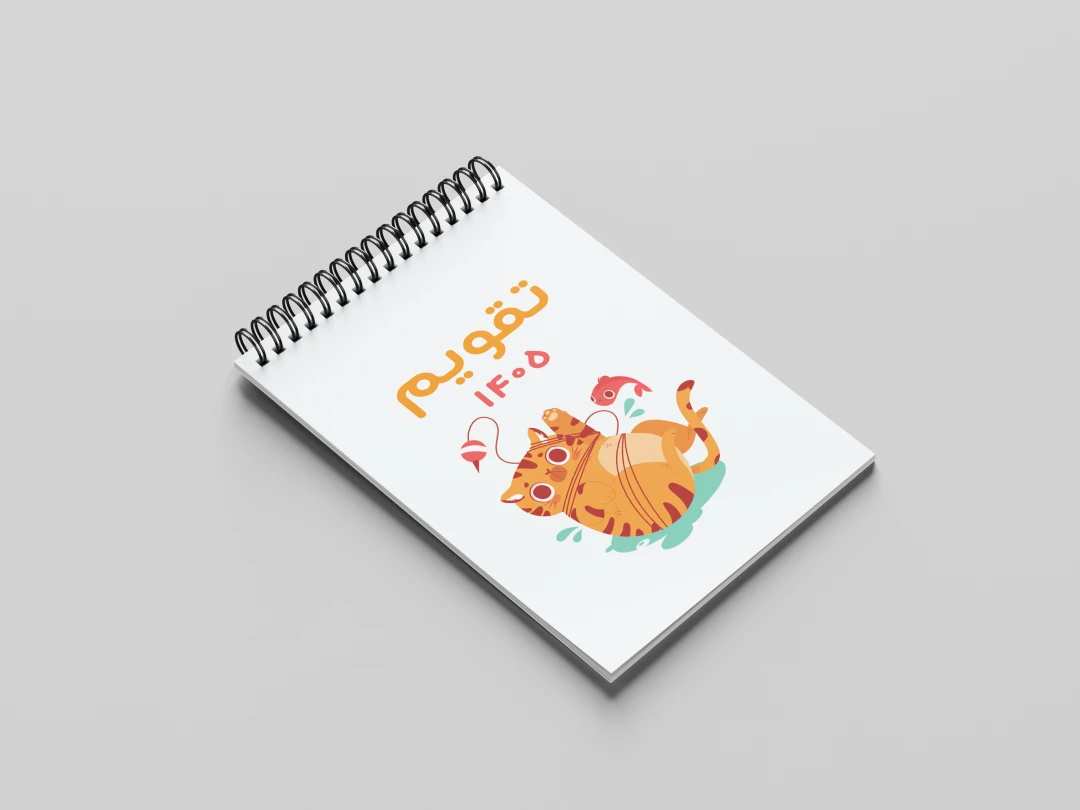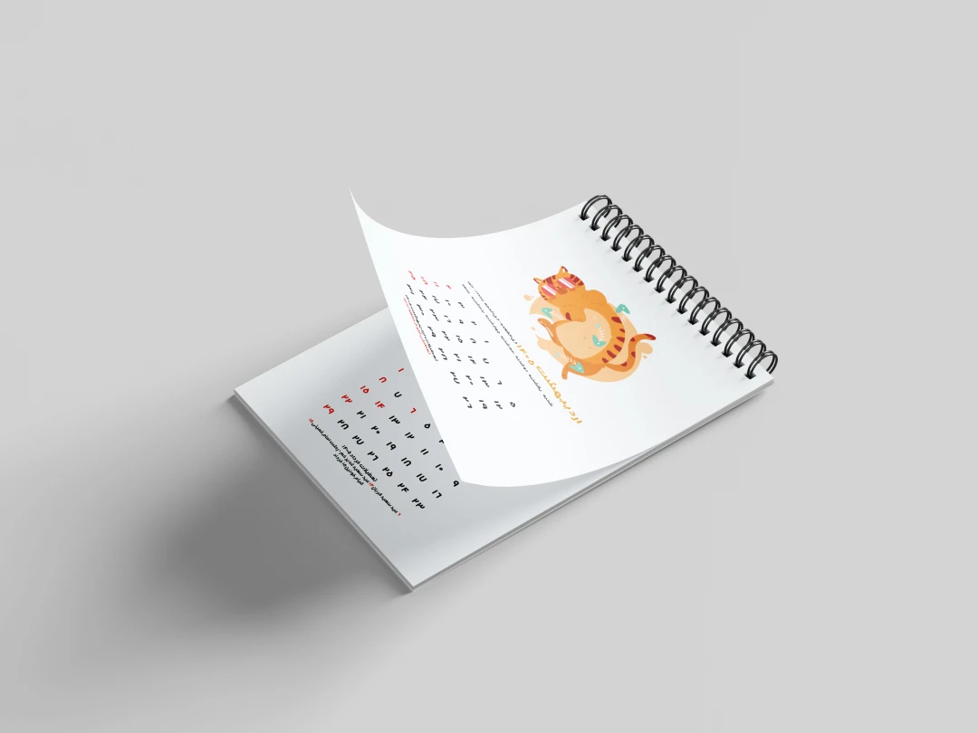 یک فایل طراحی psd شامل جلد تقویم و ۱۲ ماه سال با ابعاد A5
