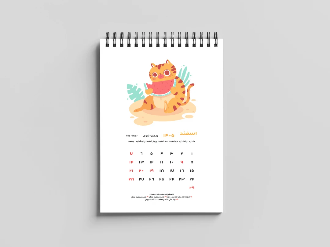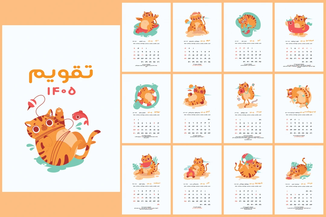 ۱۳ فایل چاپی شامل جلد تقویم و ۱۲ ماه سال