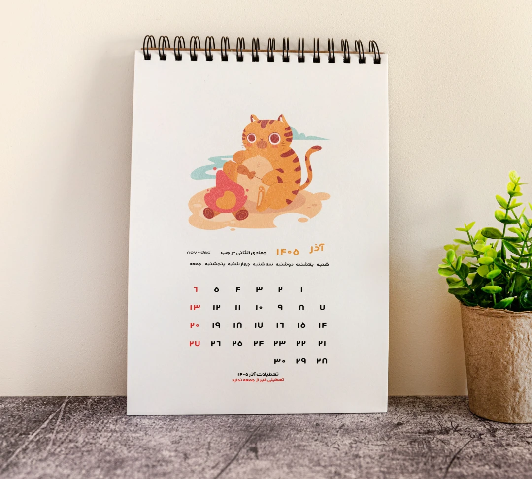 تقویم رومیزی 1405 طرح گربه کد 8035