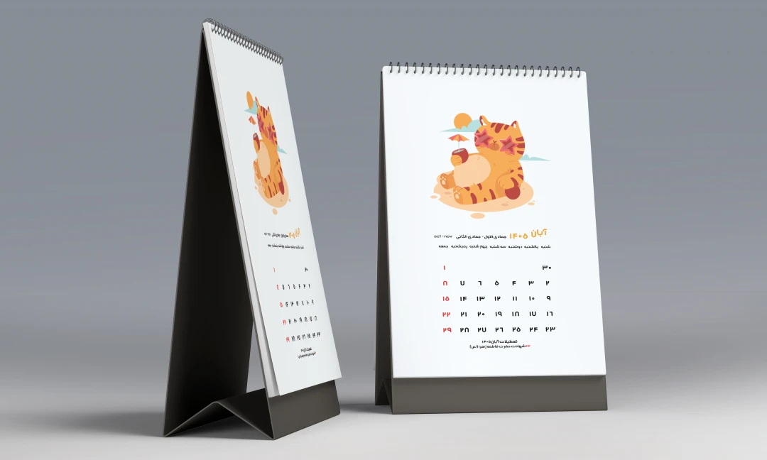 امکان چاپ و ساخت تقویم بصورت رومیزی و یا دیواری در ابعاد A5