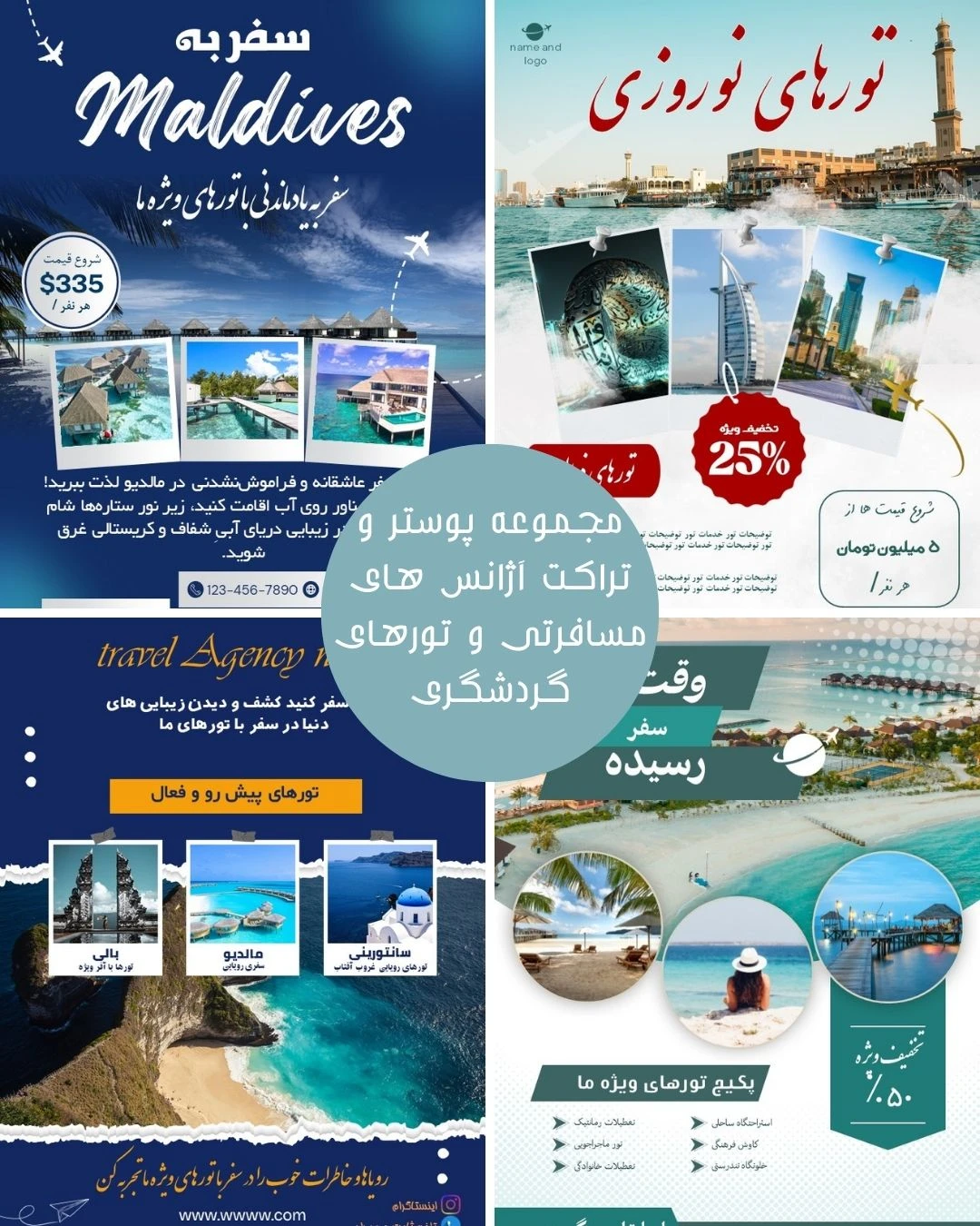 این قالبها به شما کمک میکنند خدمات و تورهای آژانس مسافرتی خود را به شکلی حرفهای، جذاب و تاثیرگذار معرفی کنید و مشتریان بیشتری جذب نمایید.