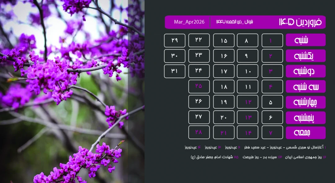 ✔ شامل تمامی روزها و مناسبتهای سال ۱۴۰۵