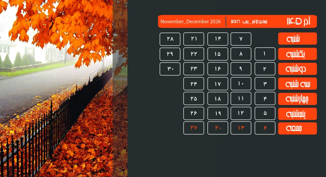 ✔ مناسب طراحی سررسید، تقویم رومیزی، دیواری و پروژههای گرافیکی
