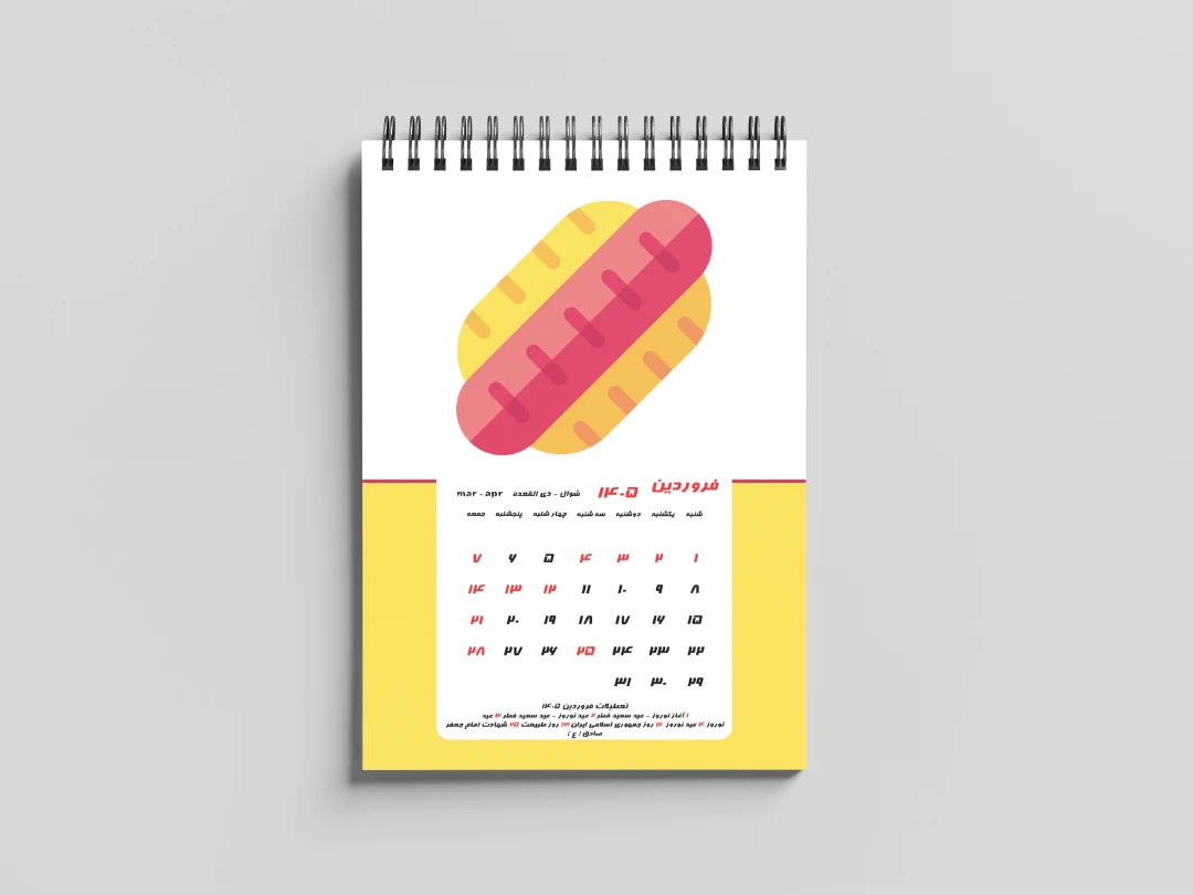 ۱۳ فایل چاپی شامل جلد تقویم و ۱۲ ماه سال