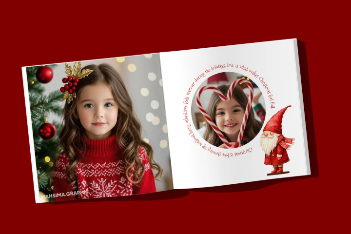 قالب آلبوم عکس کودکانه کریسمس لایهباز فتوشاپ — ثبت خاطرات شیرین کودک با تم کریسمسی 🎄