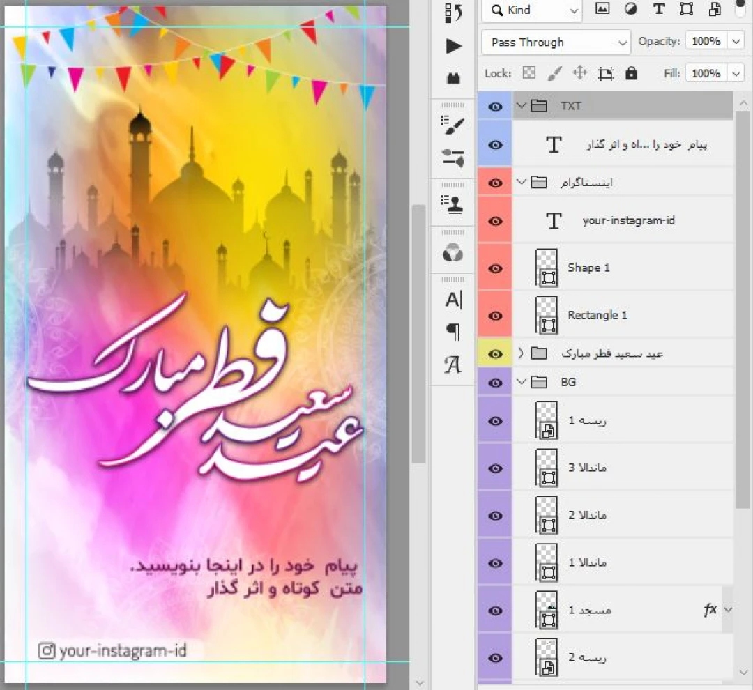 طرح پست و استوری اینستاگرام برای تبریک عید سعید فطر