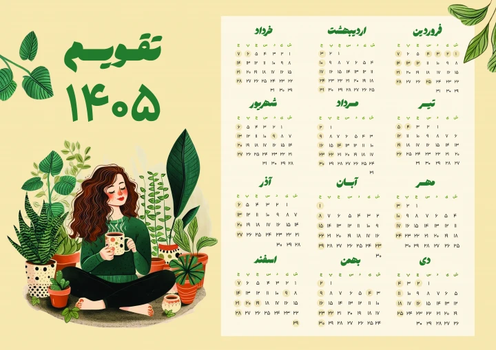 طرح لایه باز تقویم 1405 | حرفهای و آماده چاپ