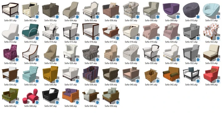دانلود ابجکت مدل سه بعدی مبلمان راحتی اسکچاپ با متریال و آماده رندر تمام آبجکت های داخل تصویر(50نوع) مدل مبل اماده اسکچاپ موجود است.